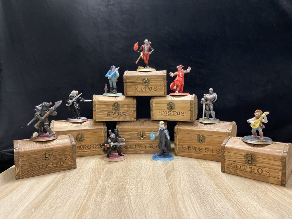 The Band of Idiots operate out of a small (but mighty!) craft room in Columbus, Ohio. Powered by our trusty 3D printers named after characters in our old campaign and the maker space at our local library, we make and design all our products in house.